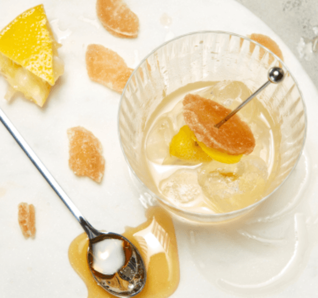 Scotchy scotch scotch, we love scotch. Especially when mixed with fresh lemon juice and honey-ginger syrup for a sweet and tart combo with bite. Here it goes down, down into our bellies.